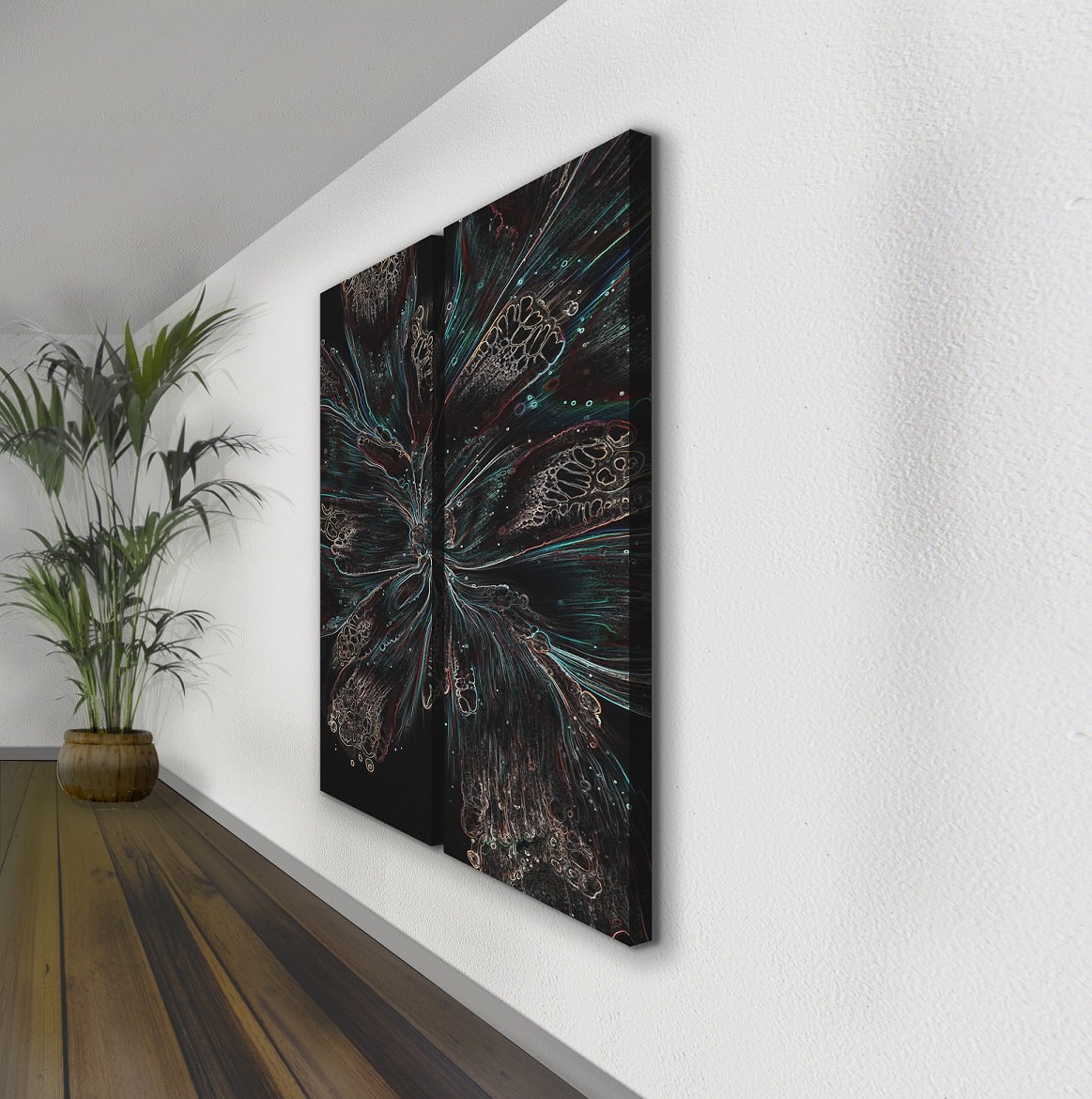 Deze extra grote blikvanger zal de show stelen in uw interieur, en daarnaast onopgemerkt zijn akoestische werk doen. De hoogwaardige digitale zeefdruk op akoestisch open materiaal zorgt ervoor dat geluid op de absorberende vulling eindigt. Een dubbele werking dus, akoestische kunst voor akoestiek én interieur.