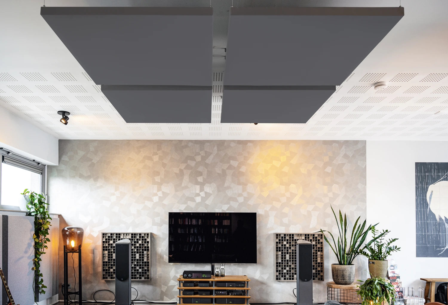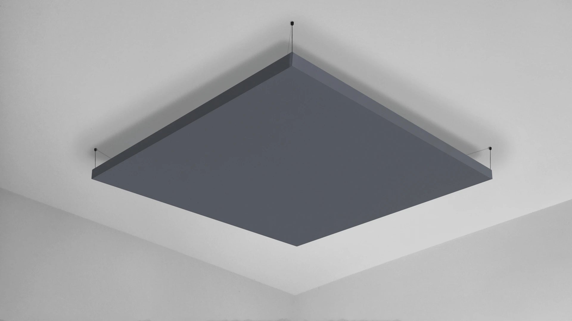 Dankzij de ophanging aan het plafond heeft dit akoestisch paneel een dubbelzijdige werking. Geluid dat zowel van onder als boven op het paneel valt eindigt in een akoestisch 'zwart gat'. De bijgeleverde ophangset is eenvoudig traploos verstelbaar van 4 tot 120cm.