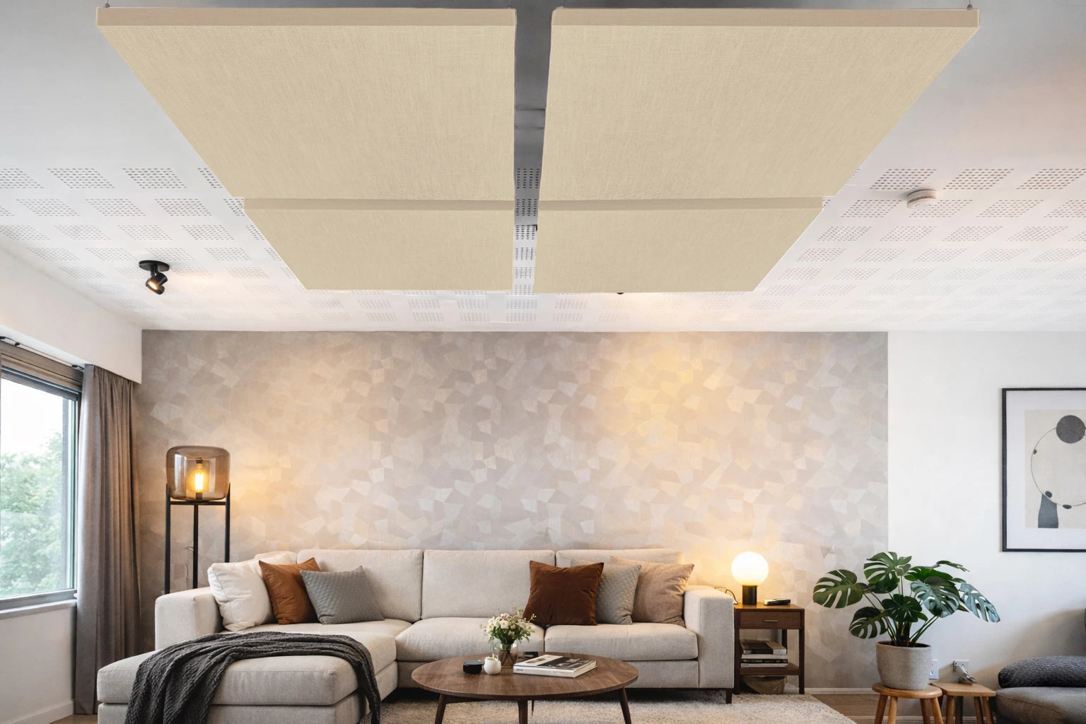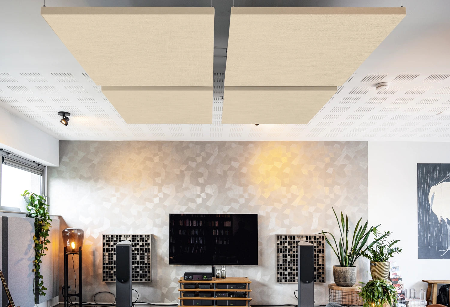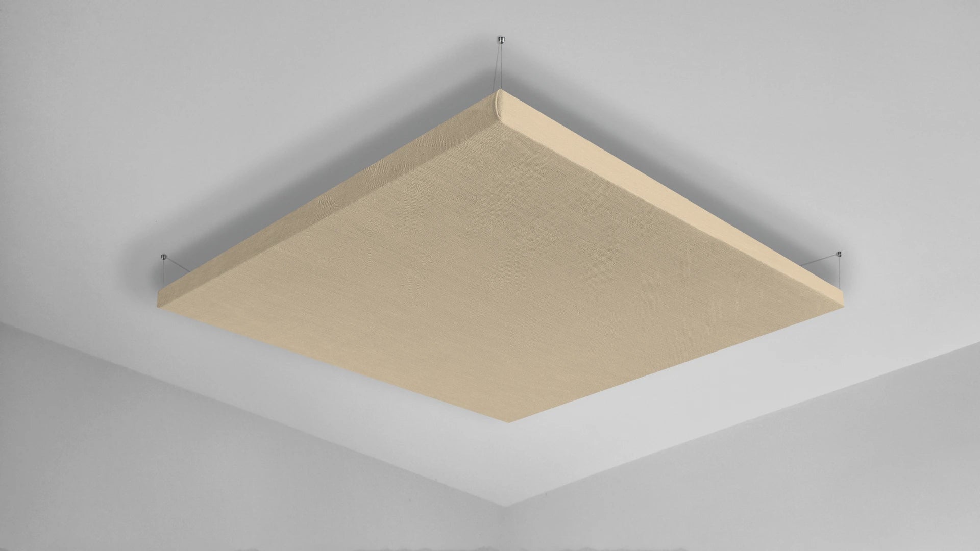 Dankzij de ophanging aan het plafond heeft dit akoestisch paneel een dubbelzijdige werking. Geluid dat zowel van onder als boven op het paneel valt eindigt in een akoestisch 'zwart gat'. De bijgeleverde ophangset is eenvoudig traploos verstelbaar van 4 tot 120cm.